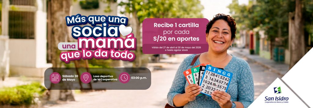 - El evento central del Bingo se llevará a cabo el sábado 30 de mayo, en la Oficina Principal de COOPSI (Huaral), en el horario de 03:00 p.m. a 6:00 p.m.